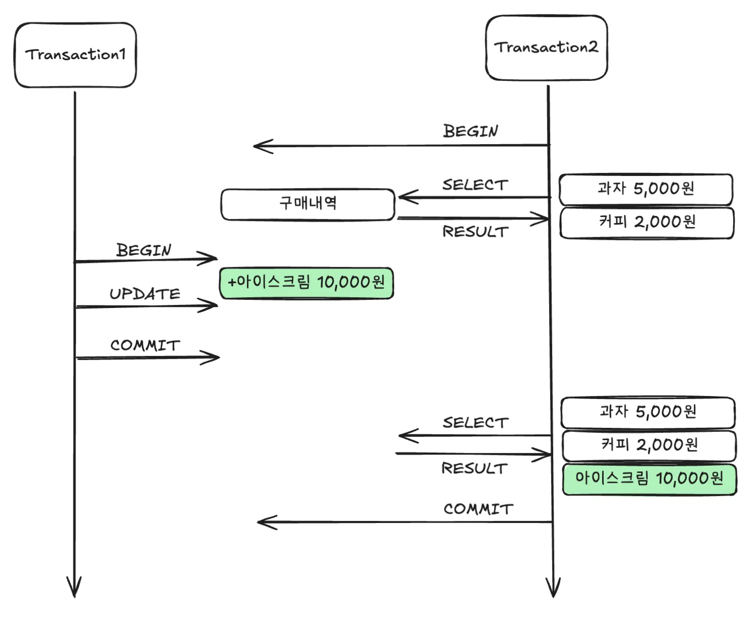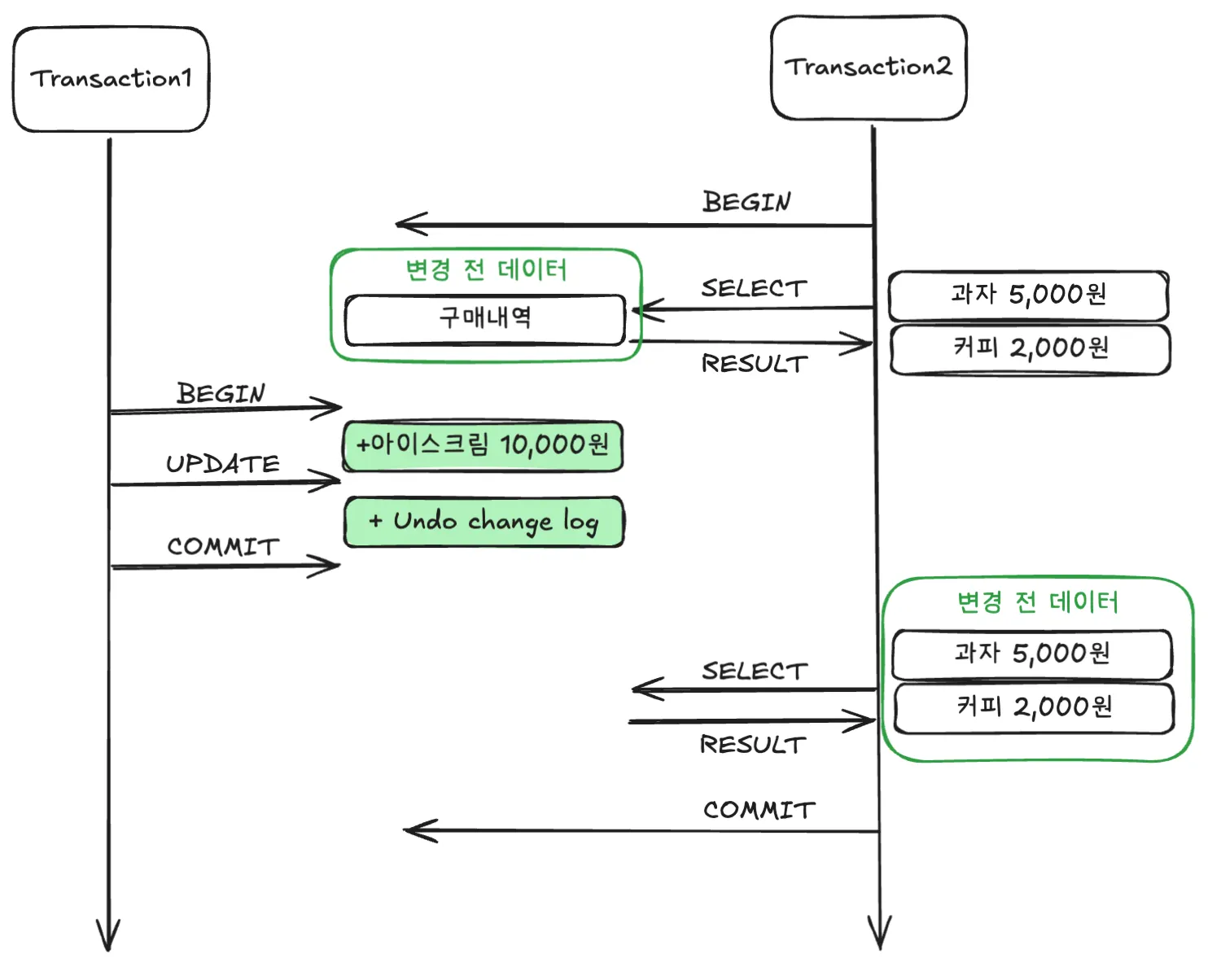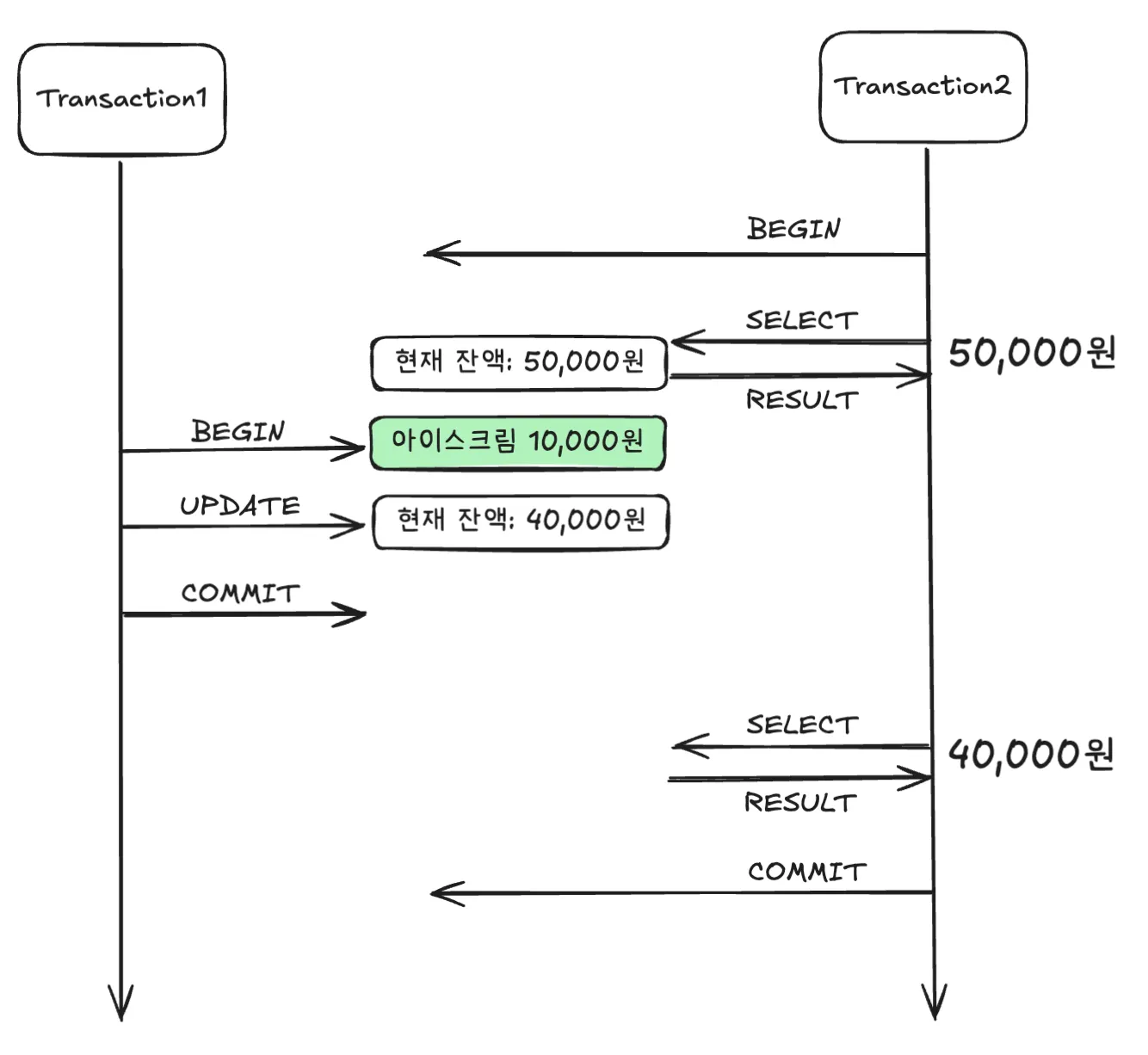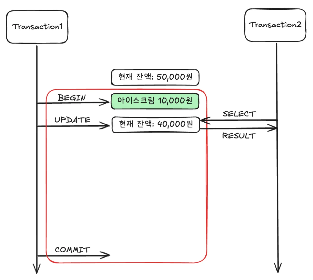 기본적으로 실행 중인 트랜잭션의 중간결과를 다른 트랜잭션이 접근할 수는 없다.
